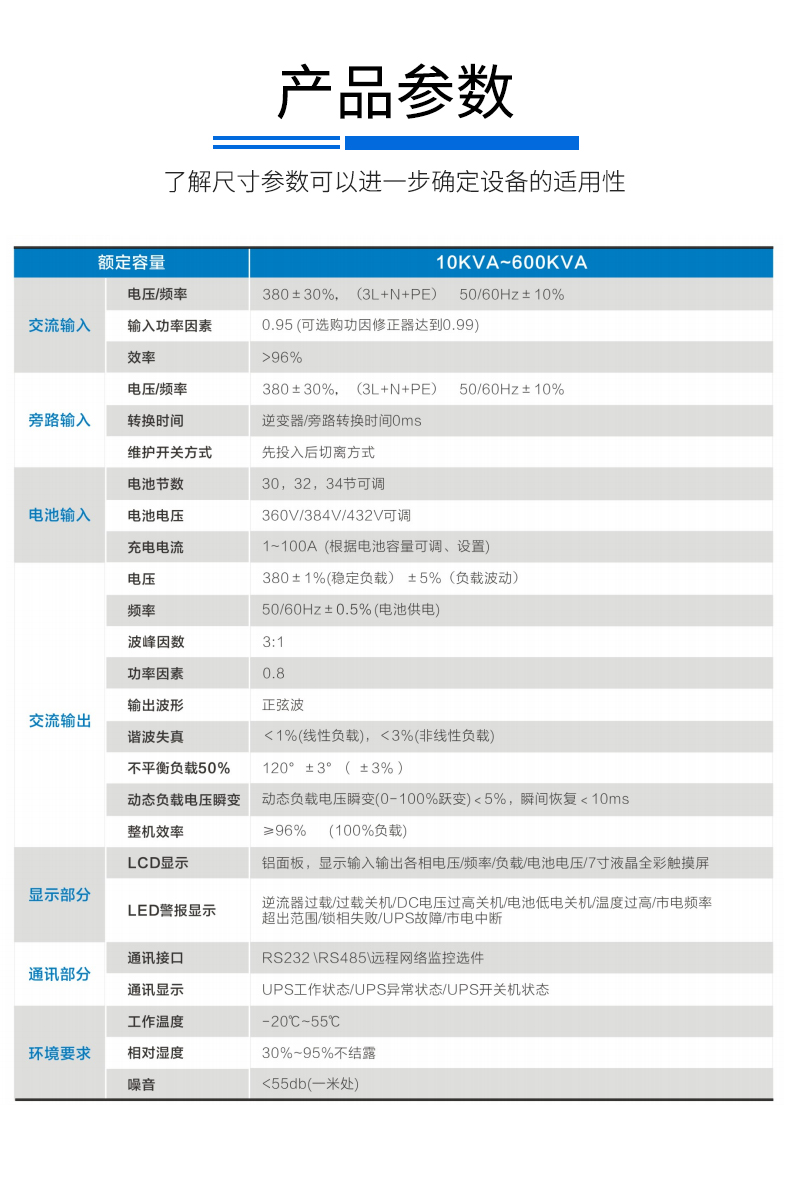 輸出功率:10KVA/8KW ~ 800KVA/640KW